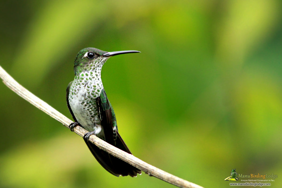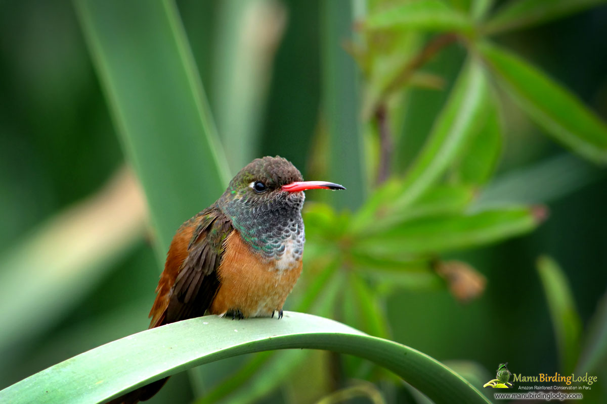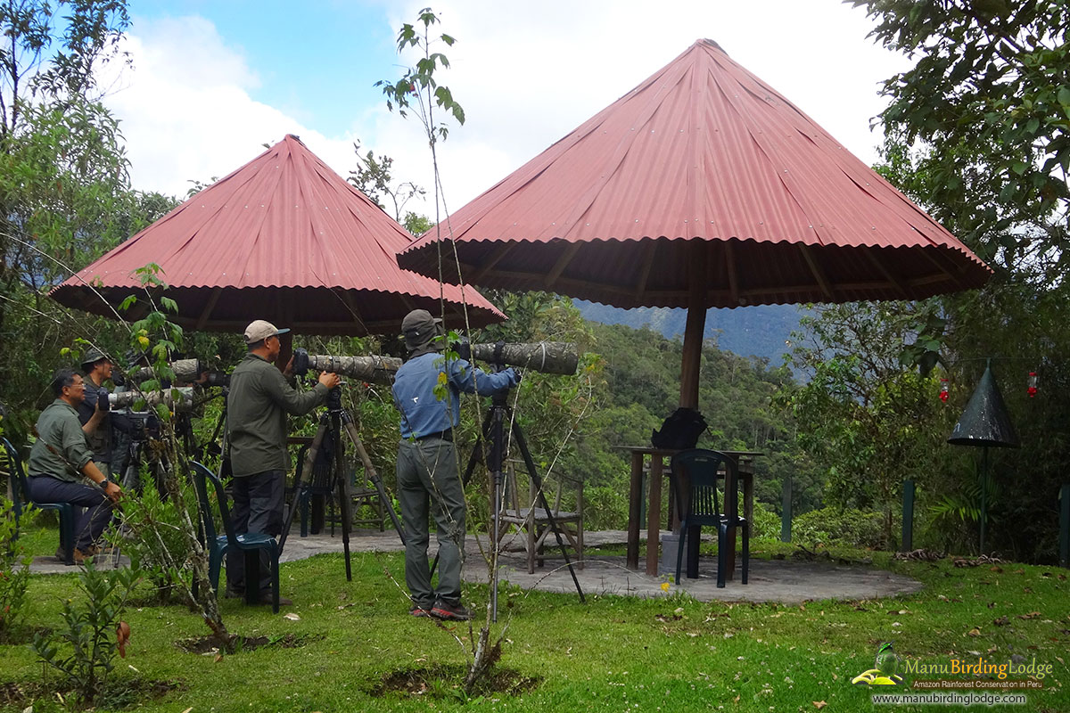 After a final morning in the birdy cloudforests we will descend further down the Manu road to the comfortable Amazonia Lodge, we shall scan the boulder-strewn rapids for Black Phoebe and White-capped Dipper. Most of the day will be spent birding the upper tropical forests of the foothills in search of such species as Military Macaw, Peruvian Piedtail, Chestnut-backed Antshrike, Stripe-chested Antwren, Black Antbird, Ornate Flycatcher, the localized Red-billed Tyrannulet and the delightful Black-backed Tody-Flycatcher. With a modicum of luck we will find an Amazonian Umbrellabird perched in a roadside tree. Cleared areas may produce Smooth-billed Ani, the odd-looking Swallow-Tanager, Blue-black Grassquit, Black-and-white and Chestnut-bellied Seedeaters, and Lesser Seed-Finch. During good weather, raptors often soar overhead and we shall keep an eye out for White Hawk and Black-and-white Hawk-Eagle in particular. Later we will cross the Alto Madre de Dios river to Amazonia Lodge, located at an elevation of 1750 ft (500 m) .Our base for the next two nights stay. B:L:D.
